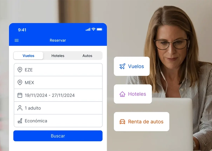 Esta plataforma integrada con ALTOUR permite que los colaboradores reserven sus vuelos, hoteles y otros servicios de viaje de forma intuitiva y personalizada, logrando una mejora en la planificación de viajes, cumplimiento de sus Políticas de Viajes y la reducción de problemas de manera operativa.